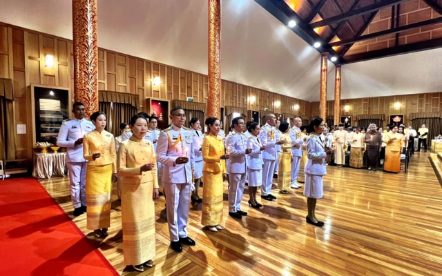On 27 July 2024, H.E. Ms. Arjaree Sriratanaban, Ambassador of Thailand to Australia, presided over a ceremony to commemorate the Auspicious Occasion of His Majesty King Maha Vajiralongkorn Phra Vajiraklaochaoyuhua’s 6th Cycle Birthday Anniversary 28 July 2024 at the Sala Thai Function Hall, Royal Thai Embassy, Canberra. The Ambassador was joined by the Consul-General of Thailand in Sydney, Heads and officials of Team Thailand agencies in Australia, together with their spouses and family and members of the Thai community in Canberra and nearby areas. The ceremony was held to pay homage to His Majesty the King, followed by a religious ceremony of merit making and alms offering to monks.